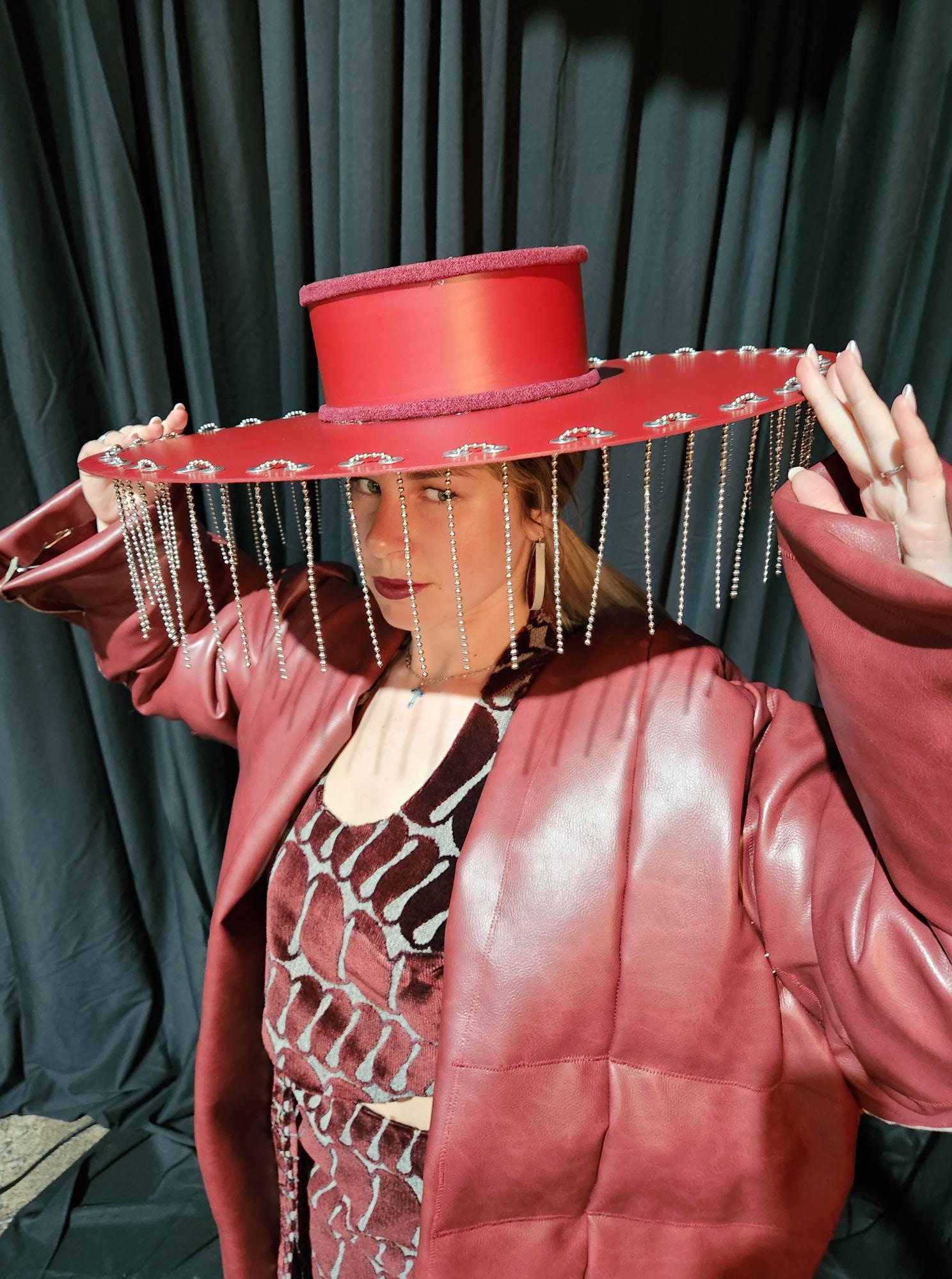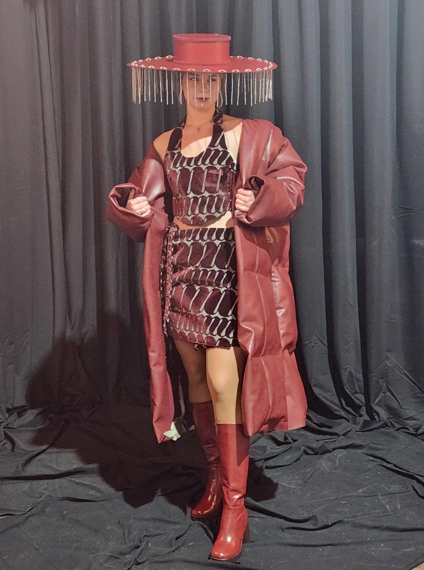 Fashion Meets Finish is a friendly Design competition where local design firms are paired with two material manufacturer partners. The design team, Formcraft, uses materials from both manufacturers to create an inventive garment that are presented in a runway-style competition. Attached are pictures of Fessenden Hall’s outfit based upon the music artist Eve. Arc-Com upholstery and Wilsonart laminate were paired together. The base structure of the laminate hat was made by our team at HUFCO. The designers made the edge band earrings and filled the jacket with raw melamine overlay paper from Wilsonart.
